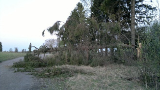 Osuuskaupan pihaan kaatui puu 2011.Kuva RV