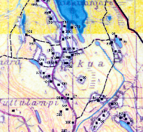Karttanäyte Soanlahden asukkaiden asuinsijoista ennen sotia. Karttasarjaa saa ostaa seuralta.